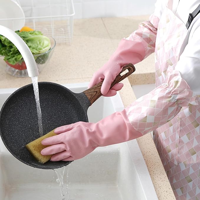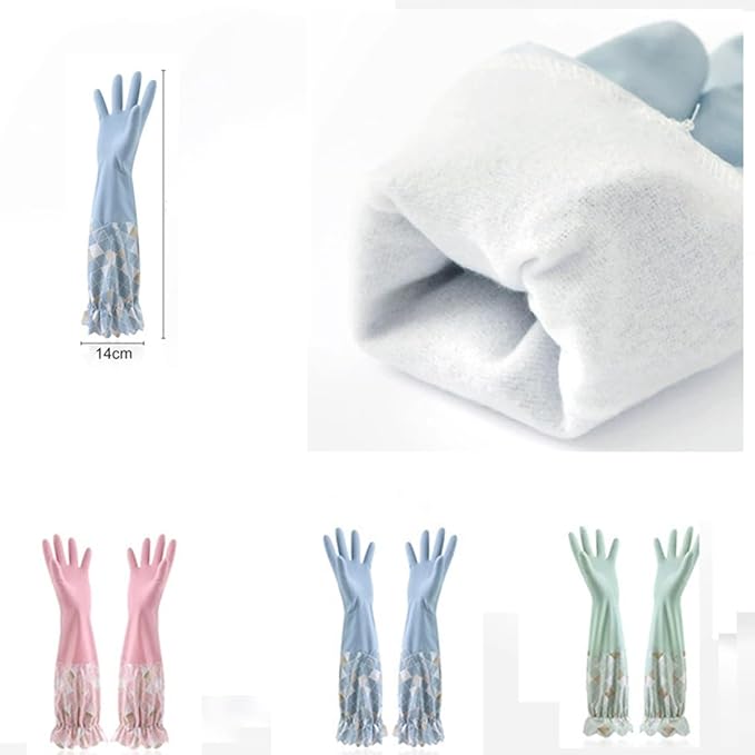 [AikinYuhin] ゴム手袋 キッチン ロング 3点セット おしゃれ かわいい 柄 食器洗い手袋 炊事用手袋 作業用 炊事・掃除用ゴム手袋 多用途 厚手 防水 防寒 長袖 洗車用手袋 洗濯用 防寒ゴム手袋 園芸用手袋 | oioioichan