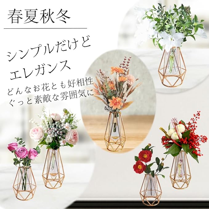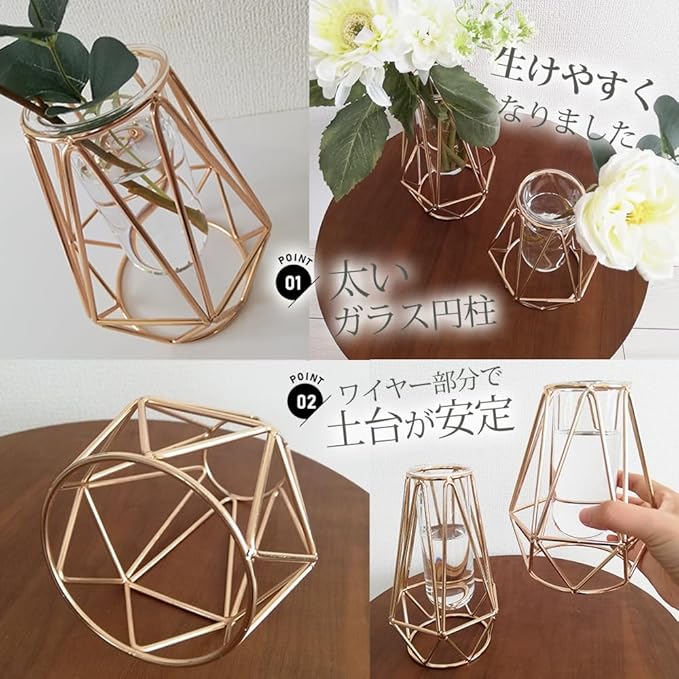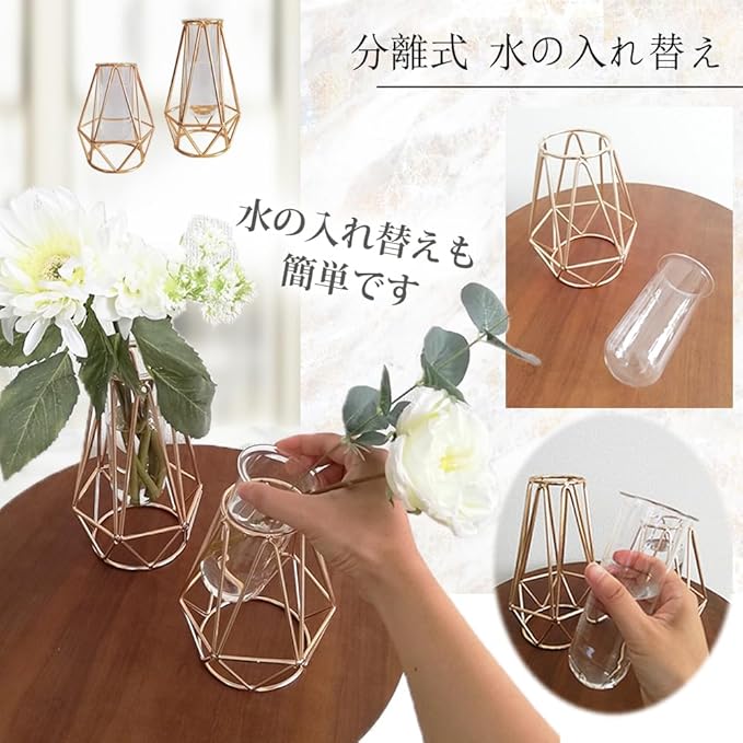 かわいい おしゃれ 華やかゴールドワイヤーフレームの花瓶 ~ 部屋なじみの良い上品なデザインで お花を飾るのが楽しくなります ~