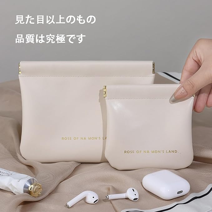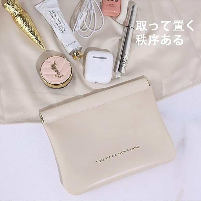 【便利なデザイン】開く部分にはメッキ仕上げの金属製の口が内蔵されており、開閉が簡単です。化粧品やアクセサリーを取り出すのに便利です。