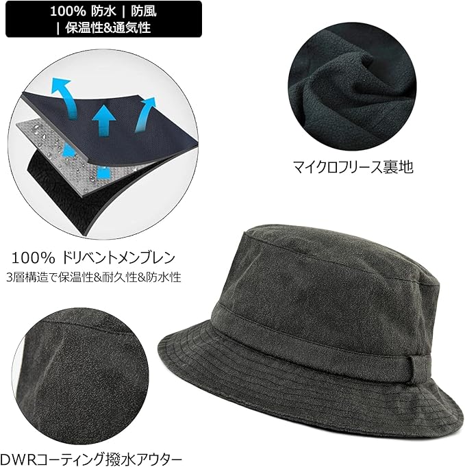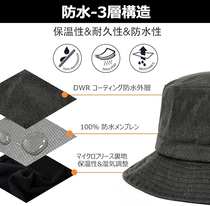 どんな天候でも暖かく、乾燥を保つことができるユニセックススタイルの3層防水防風バケットハットです。