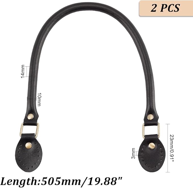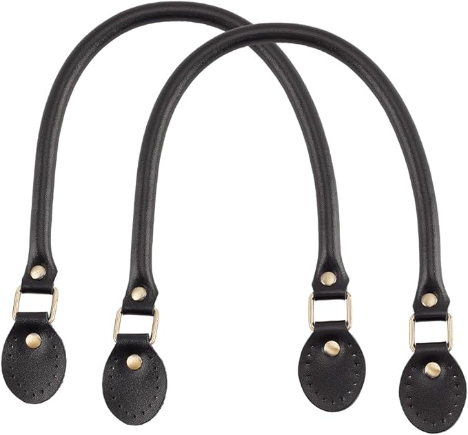 PH PandaHall 2本 レザー持ち手 バッグの持ち手 かばんの取っ手 バッグストラップ 縫製スタイル DIY 修理 交換用 ビジネスバッグ ハンドル 手作り素材 材料 長さ約50cm 黒 | oioioichan