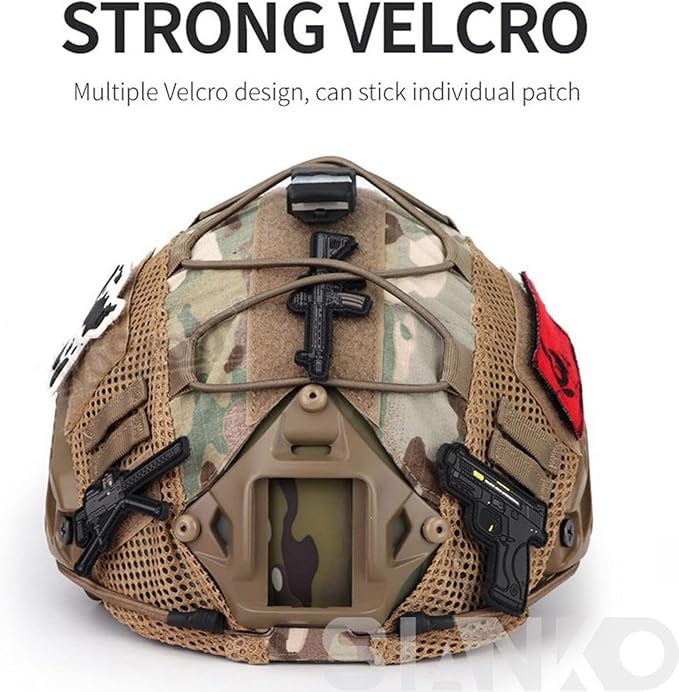 ★ 取り付け方法: フックアンドループパネルを通してヘルメットに貼り付け、取り付け/取り外しが簡単で、ヘルメットカバーの上部のゴムコードが取り付けられたアクセサリーを効果的に固定できます。