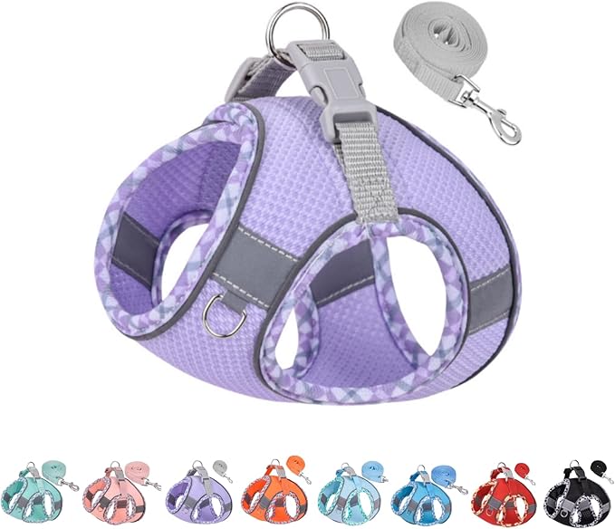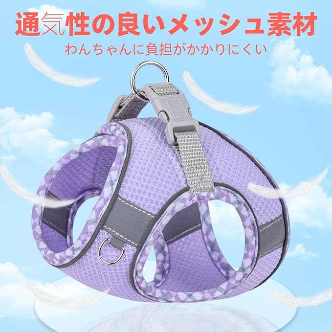 犬 ハーネス リードセット 負担が少ない 軽量 通気 犬用ハーネス 猫ハーネス首輪 胴輪 簡単着脱 抜けない 犬はーねす小型 3MTM反射素材付属 マジックテープ 超小型犬 中型犬 調節可能 ペット用品 引っ張り防止 着脱簡単 老犬 歩行補助 散歩用 夏用 人気 メッシュ おしゃれ チェック柄 (XS, パープル) | oioioichan