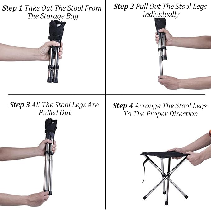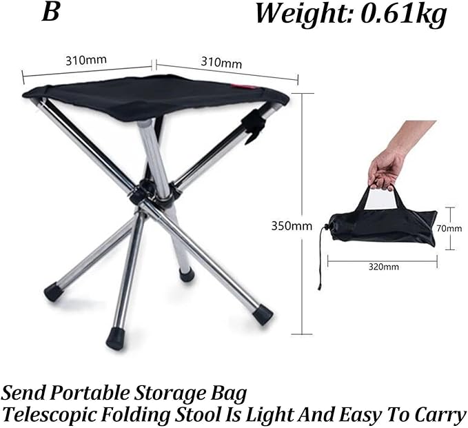 【簡単な収納】折りたたみスツールを引き出し、クロスして折りたたんで収納できます。このフィッシングスツールはわずか約680gです。耐久性のあるキャリングポーチも付属しており、保管や持ち運びに非常に便利です。旅行の際にもスペースと負担をほとんど取りません。