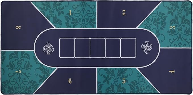 6 プレーヤー用ポーカー テーブル マット: この耐久性のあるポーカー マットは、テーブルをプロのポーカー ゲーム テーブルに変えることができます。完璧な大きなサイズは、マルチプレーヤーをサポートできます。友達と一緒にカードゲームをして楽しんだり、家に加えるのに最適です。