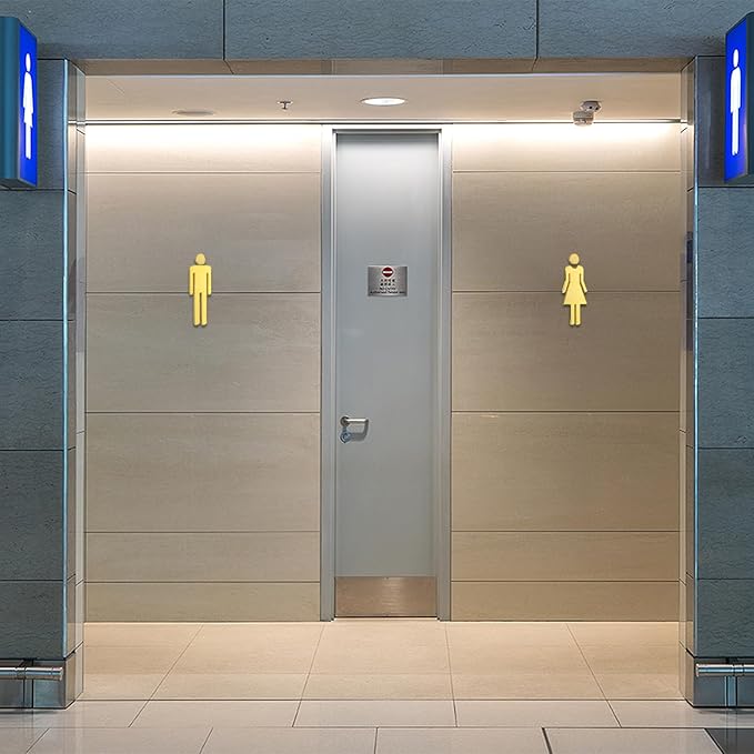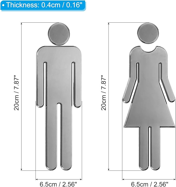 説明: 裏面に粘着剤が付いているので、ドアや壁などの滑らかな表面に簡単に貼り付けることができます。男性用と女性用のデザインがあり、2つのトイレを簡単に区別できます。サインは装飾的なタッチとしても機能し、トイレにスタイリッシュさを加えます。