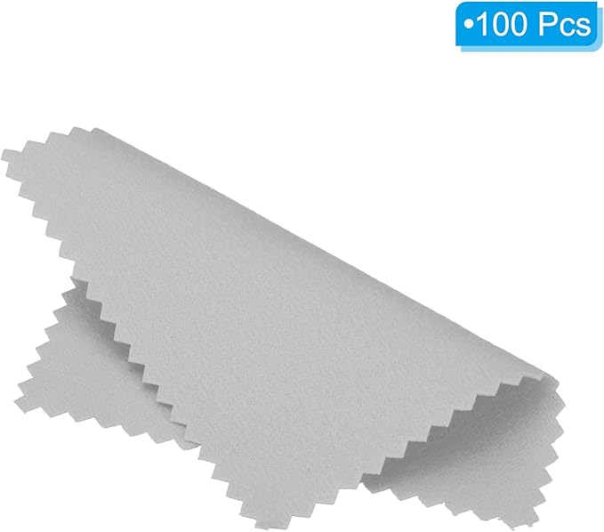 素材:マイクロファイバー;カラー:ライトグレー;合計サイズ:8 x 8cm(L*W);厚さ:0.4mm;パッケージ内容:100 x ジュエリークリーニングクロス