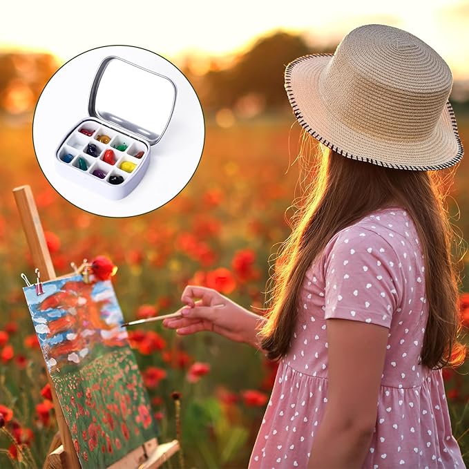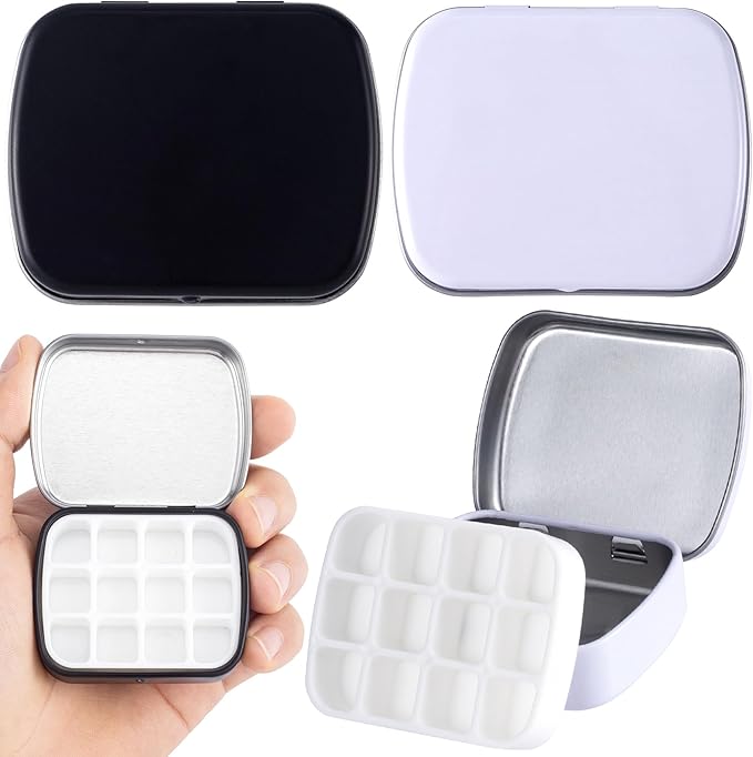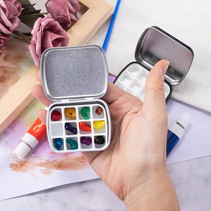 【取り外し可能なデザイン】合計2個の空の水彩パレットは、旅行のニーズを満たします。ミニ水彩パレットには、金属缶1個、プラスチックトレイインサート12個とウェル1個、ミニボックス内に収まる取り外し可能なトレイが付属しています。 水彩パレットは簡単に開き、しっかりと閉じることができます。