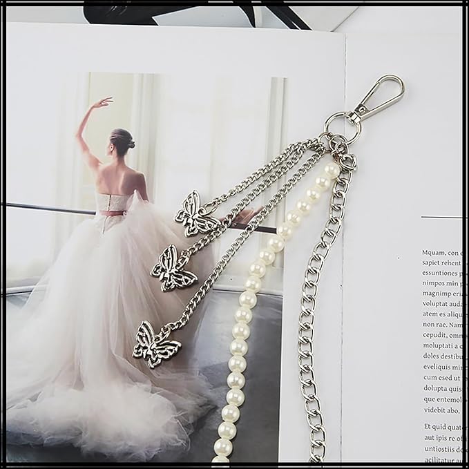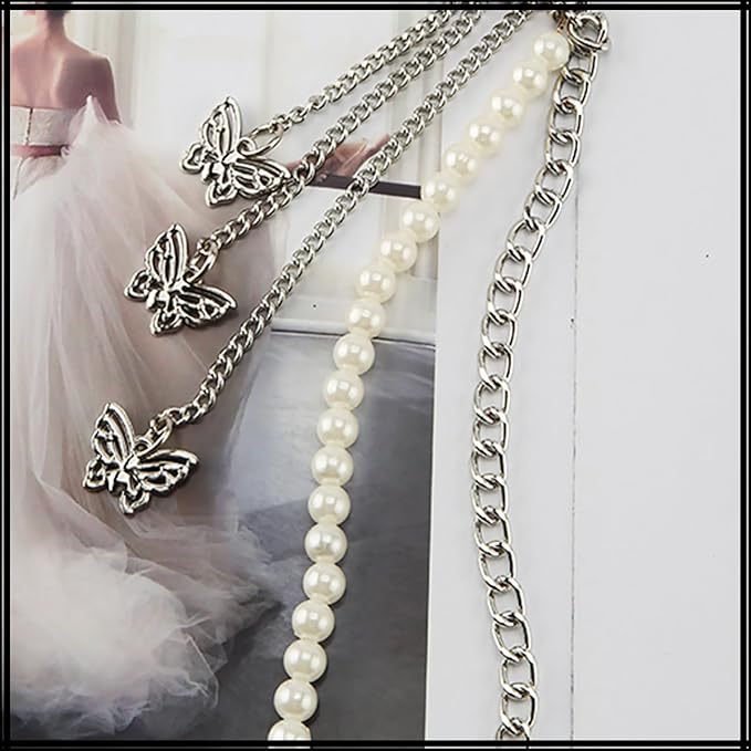 パール チェーン と 蝶 の チャーム が かわいい ウエスト チェーン ベルト!海外でも人気の アクセサリー や ジュエリー感覚で使える ベルトです。