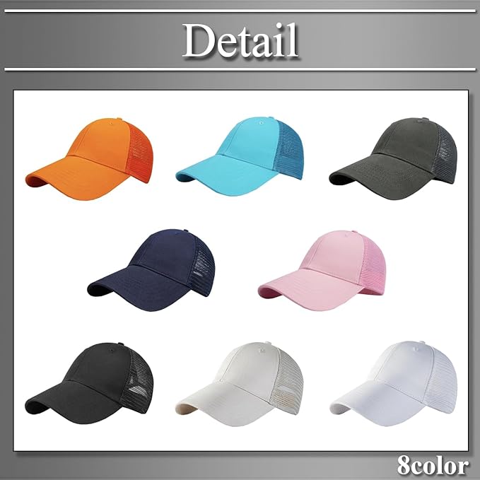 シンプルな無地のデザインにバックサイドのメッシュ部分がかっこいいオシャレなカジュアルキャップとなります。
