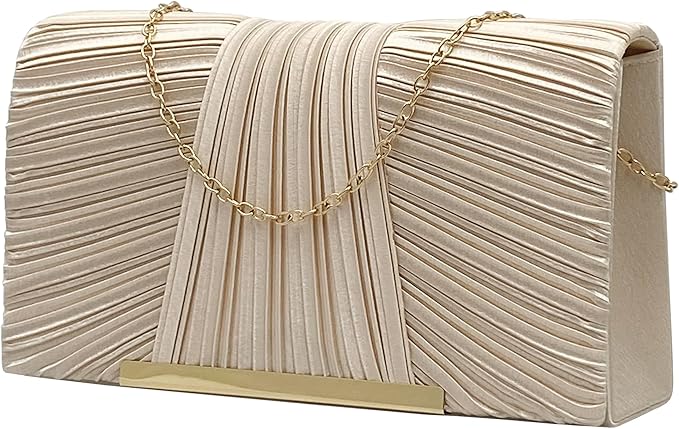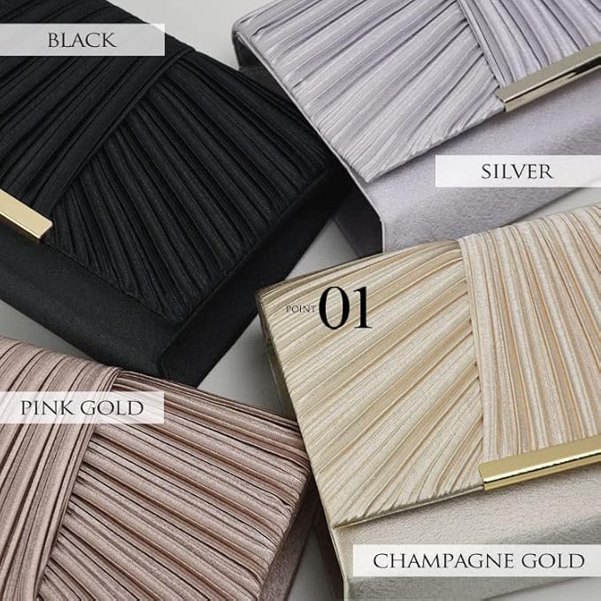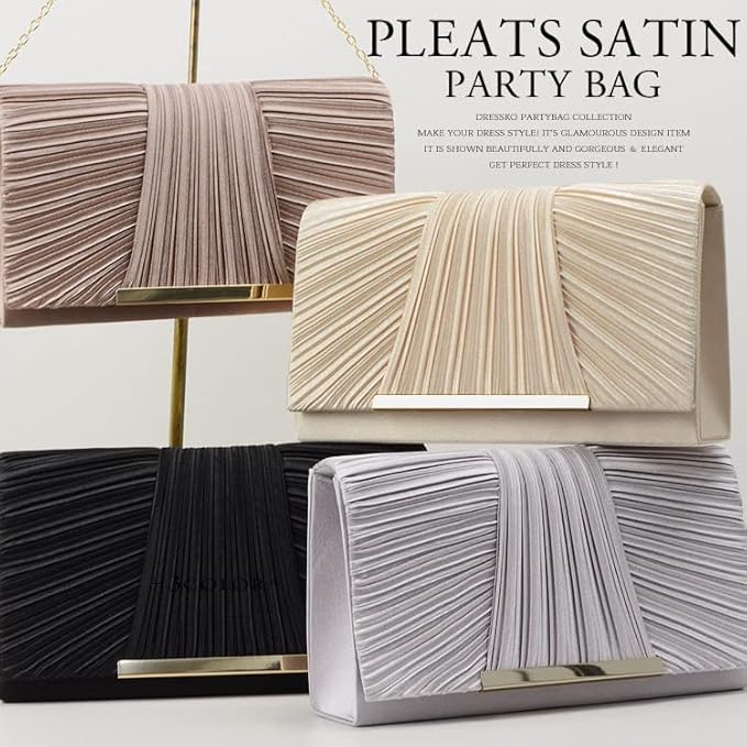 [hotlips] パーティーバッグ 結婚式 黒 クラッチ 結婚式 バッグ レディース 2way GOLDポイント プリーツサテン パーティーバッグ クラッチバッグ ロングチェーン付 | oioioichan