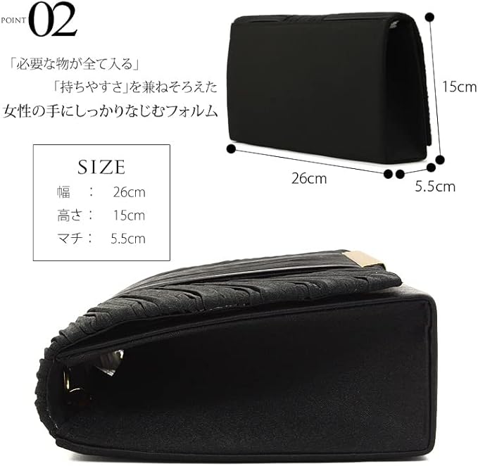 【収納量】ご祝儀袋、ミニ財布、ハンカチ、スマホ、お化粧品 etc 内ポケット1つ付き