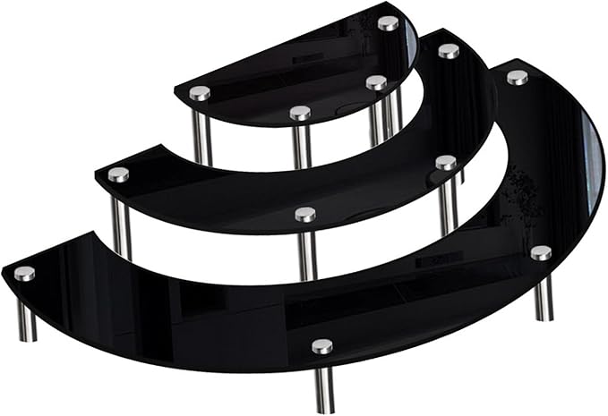 【ユニークなデザイン】3段の半月棚のデザインにより、デザートスタンドは3段3つの異なるレベルを所有し、必要に応じて一緒にまたは個別に使用できます。当社の卓上ディスプレイライザーを使用して部屋や小売店に展示すると、すべてのコレクションや商品がゲストや顧客の最も目を引くものになります。 3 段ライザーは、キャビネットの狭いスペースでも、視聴者に優れた鮮明なディスプレイビジュアルを作成できます。