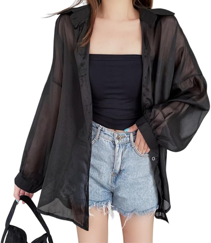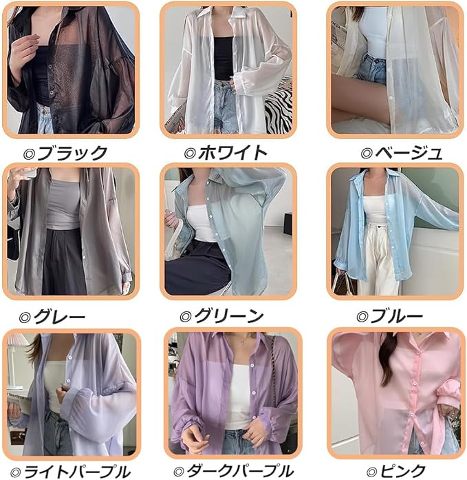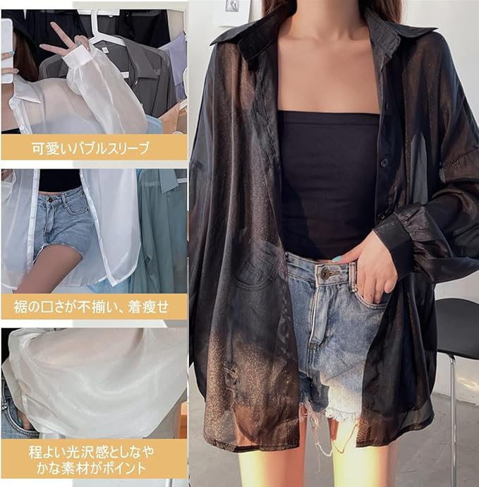 GUVACEE シャツ ブラウス レディース 長袖 UVカット カーディガン レディース トップス 透け感 ボリューム スリーブ UVカット 日焼け対策 冷房対策 体型カバー ゆったり 羽織 韓国 春夏秋 | oioioichan