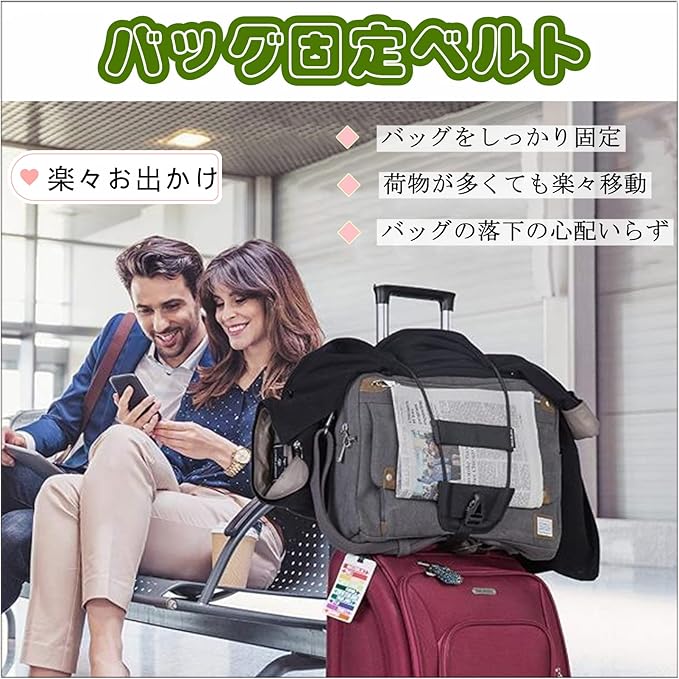 【出張・旅行便利グッズ】バッグとめるベルトをスーツケースに合わせて使用することで、荷物のばらばらによる多くの悩みをスーツケースと荷物袋を1つにした荷物掛けベルトで簡単に解決できます。旅行や出張にも無駄な時間と体力を使わずに済みます。