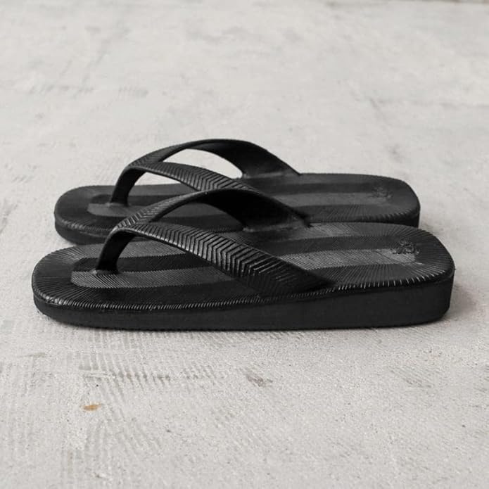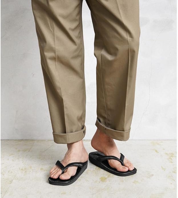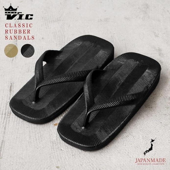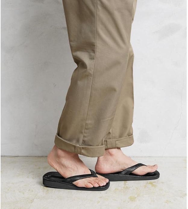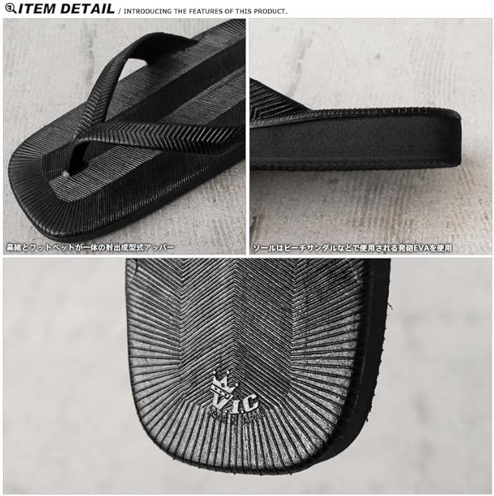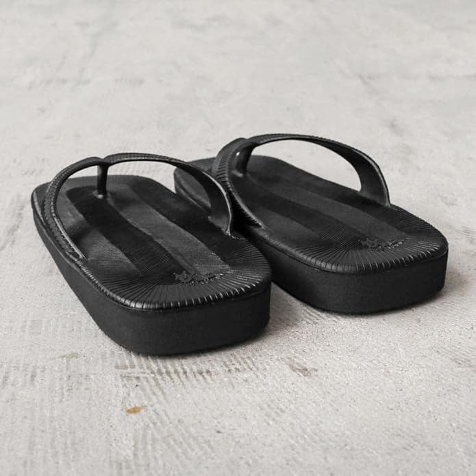 和の雰囲気を感じる雪駄ようなビーチサンダルです。 アッパーは射出成型式で鼻緒とフットベットが一体になっており、ソールはビーチサンダルなどで使用される発砲EVAを使用していますので水辺でも問題なく使用が出来ます。 底には波型のソールパターンが施され滑りにくい仕様になっています。