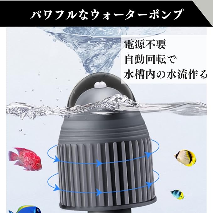 【パワフルなウォーターポンプ】電源不要の自動回転で水槽内の水流を作るウェーブメーカーです。360 自動均一回転し、水槽内で波を作ります。