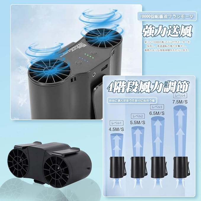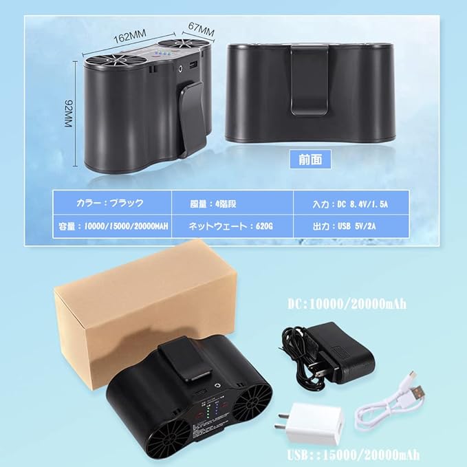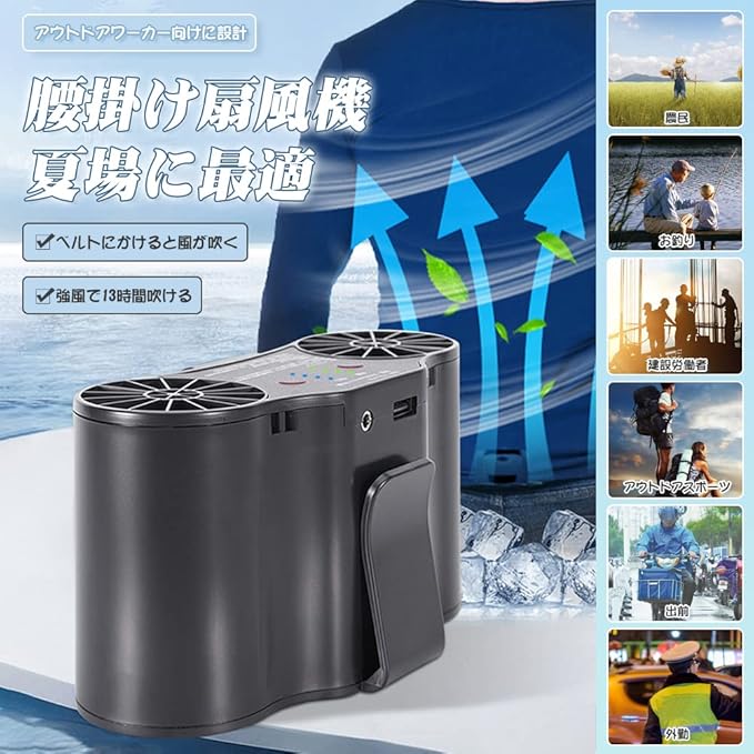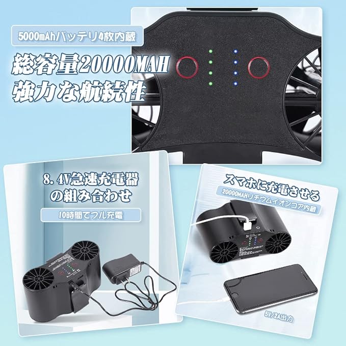 携帯扇風機 10000mAh/15000mAh/20000mAh大容量電池 ダブルファン 腰掛け 卓上 扇風機 ミニ 小型 USB/DC 風量4段階 超強風 スマホに充電させる 工事現場/ゴルフ/農作業/配達作業/倉庫などアウトドア | oioioichan