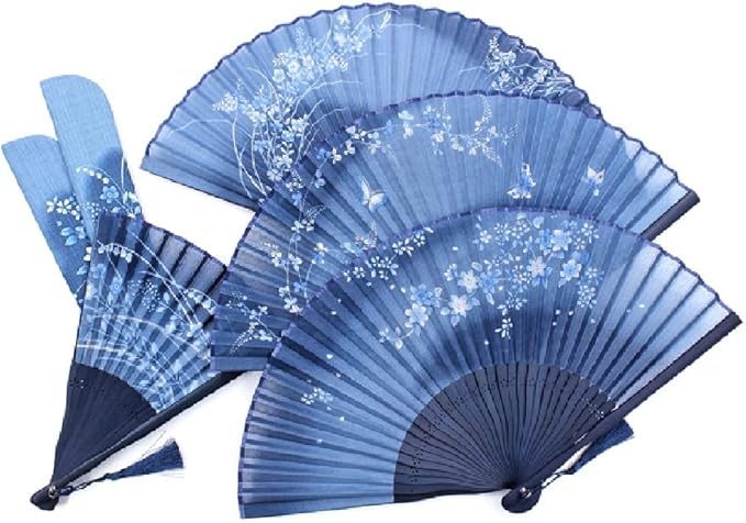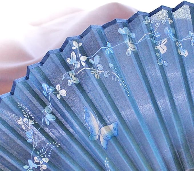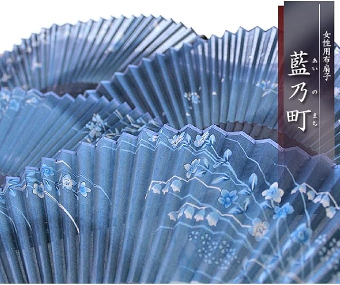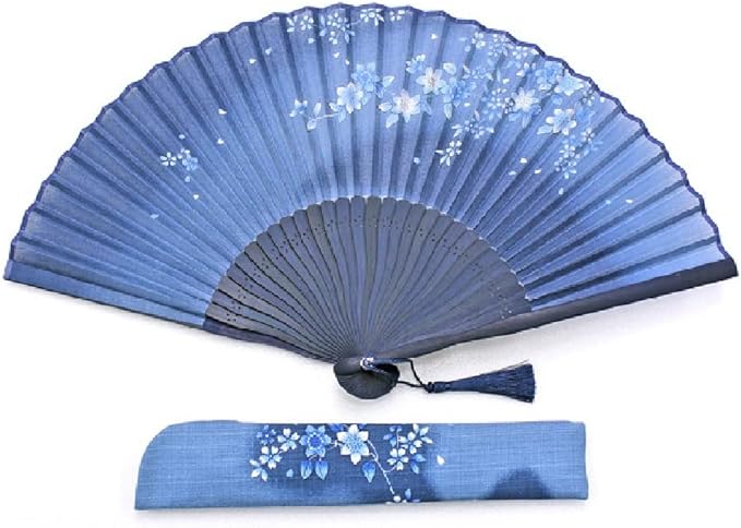藍色のぼかしがアクセントの扇子袋は、扇面と同じモチーフが両面に入りどの角度からも美しい。 幅広い年代の方に愛される、舞扇堂のロングセラー女性用扇子です。