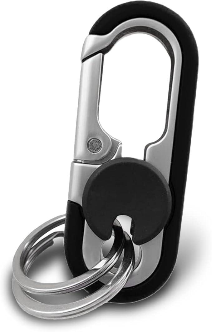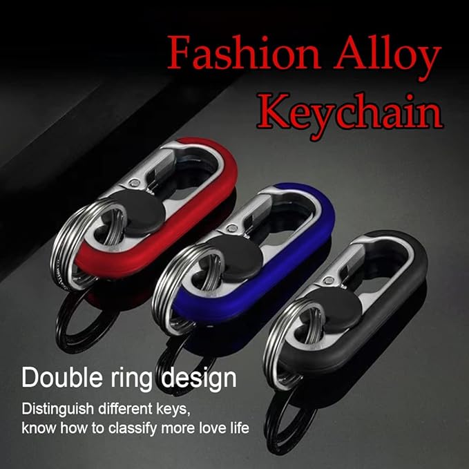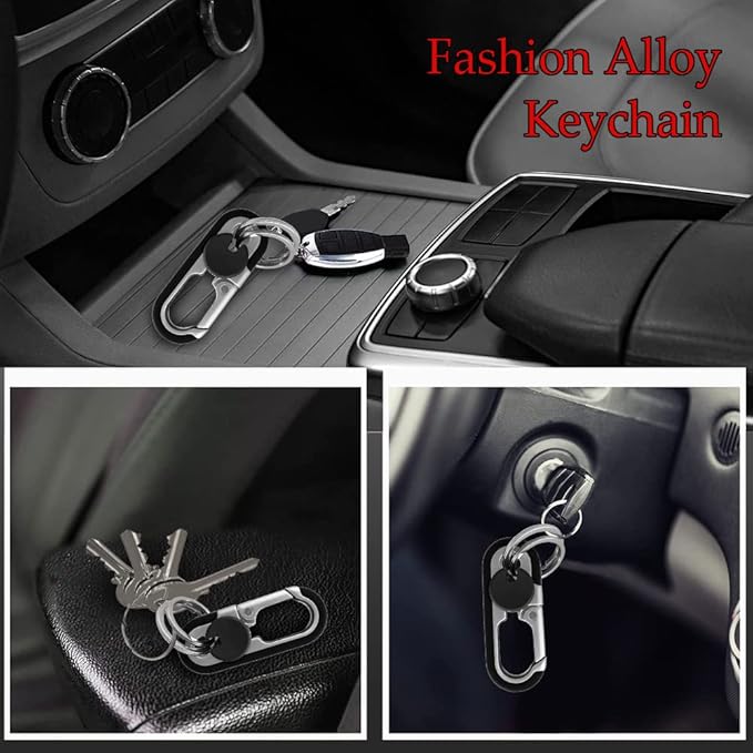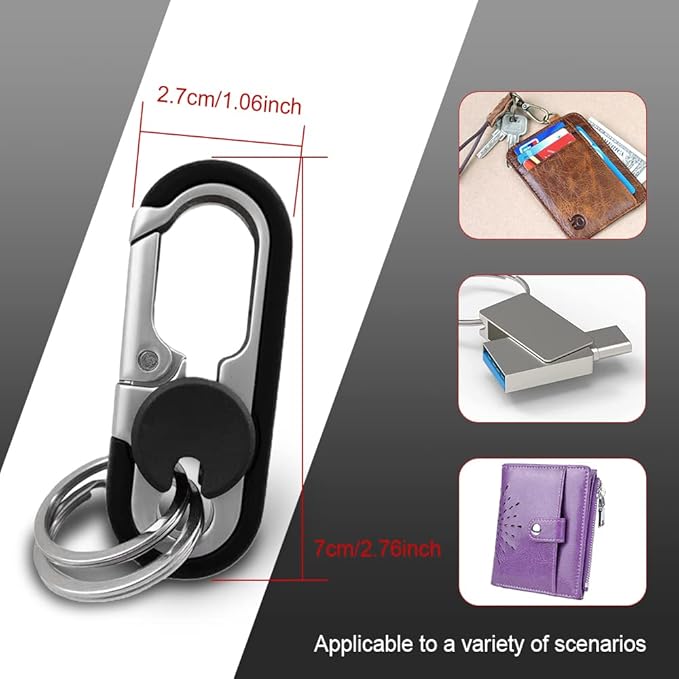 Jsorum 高耐久キーチェーン 紛失防止キーチェーン ダブルキーリング付き メタルカーキーチェーン カーフォブキーホルダーホルダー 男女兼用 (ブラック)