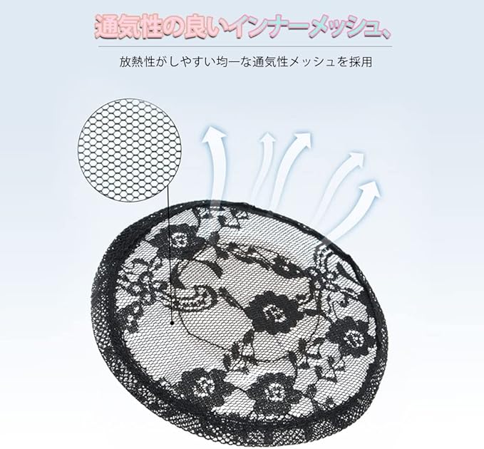 ベース:黒いネット付き、夏の日専用ウイッグ、快適、通気性がよく。