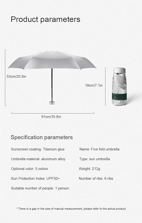★コンパクトでポータブルな傘: 直径 35.8 インチで、非常に雨の日でも雨からあなたを守ります。 折りたたむと、5 つ折りのキャノピーとクロムメッキの金属製の傘の長さはわずか 7.1 インチです。 だから、どこにでも収納できます。 ポータブルで軽量 (7.5 オンス) の傘で、旅行に最適です。