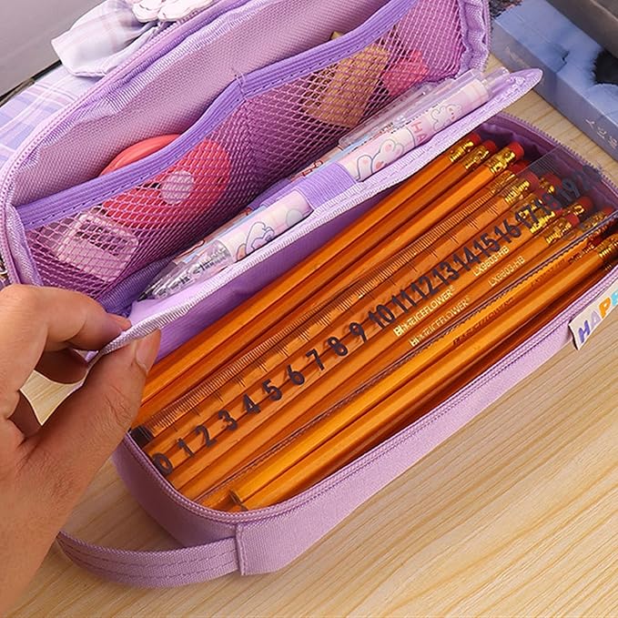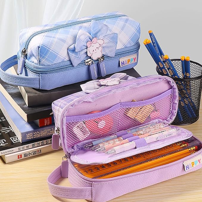 この素敵な筆箱は、明るい色、かわいいリボン、落下時の騒音、押した時の変形がなく、学習の楽しみを増やし、学習のプレッシャーを軽減します。ソフト、快適な感じ。事務用品でも学用品でも。