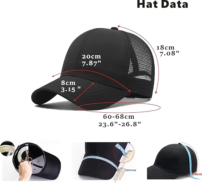 ベースボールハットは、大きな/大きなオーバーサイズのヘッド用に設計されています。 頭囲:23.6インチ-26.8インチ (60-68cm)。 つば/ひさしの長さ:3.15インチ(8cm)。 帽子の深さ:7.08インチ(18cm)。