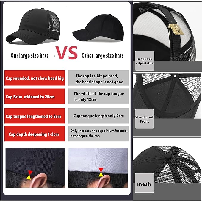 MUNULA オーバーサイズ クイックドライ メッシュ トラッカーハット ビッグヘッドハット メンズ XXL ベースボールキャップ 通気性 ダッドハット 調節可能 23.6~26.8インチ | oioioichan