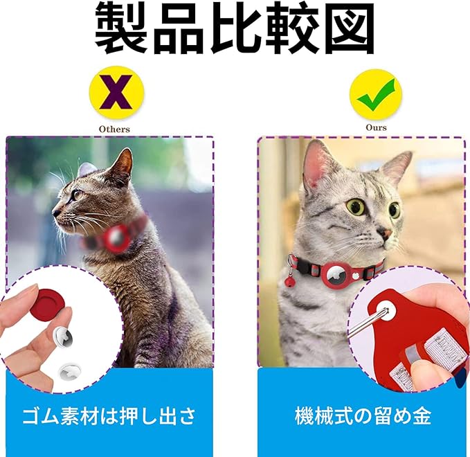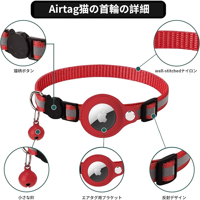 この首輪はAIRTAGに適用しています、AIRTAGを首輪に付けた後、ペットにつけて、GPSは働きます、ペットを追跡できて、見つけることが簡単になります、それにしっかり固定できますので、落としにくいです、(IOSのみ対応できます)注意:商品にはairtagは含まれておらず、airtagは自分で購入する必要があります。