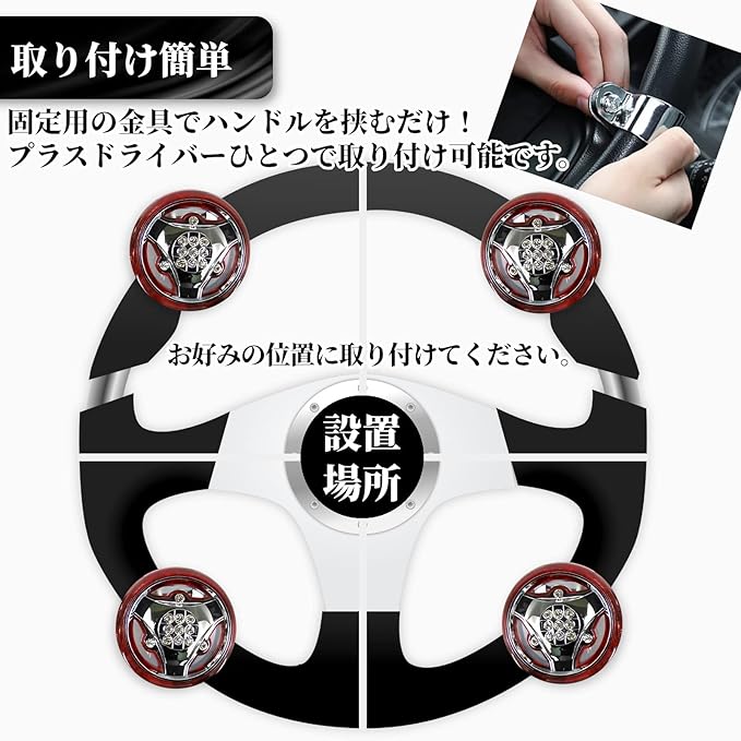 【片手でラクにハンドル操作】ハンドル操作の補助やお車のドレスアップにおすすめのハンドルスピンナーです。片手でスムーズにハンドルが回せるので、普段の通勤や長時間のドライブをするとき運転がグッと楽になります。