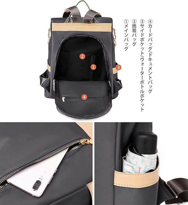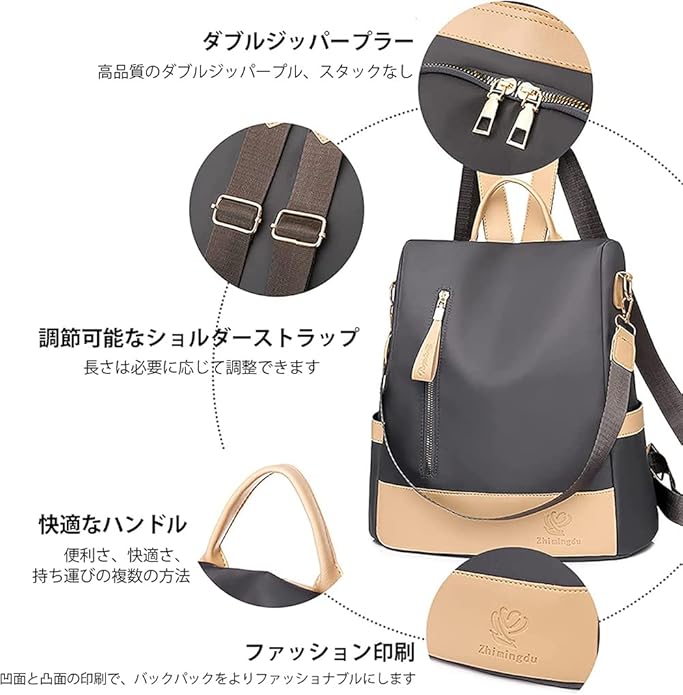 リュックレディース リュックサック大人バックパック背面ファスナー 3way ショルダー 大容量 防水 人気 女性 マザーズ リュック かわいい ボディバッグ おしゃれ ナイロン アウトドア旅行通勤通学出張出張トラベル ギフト | oioioichan