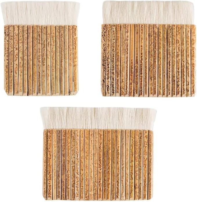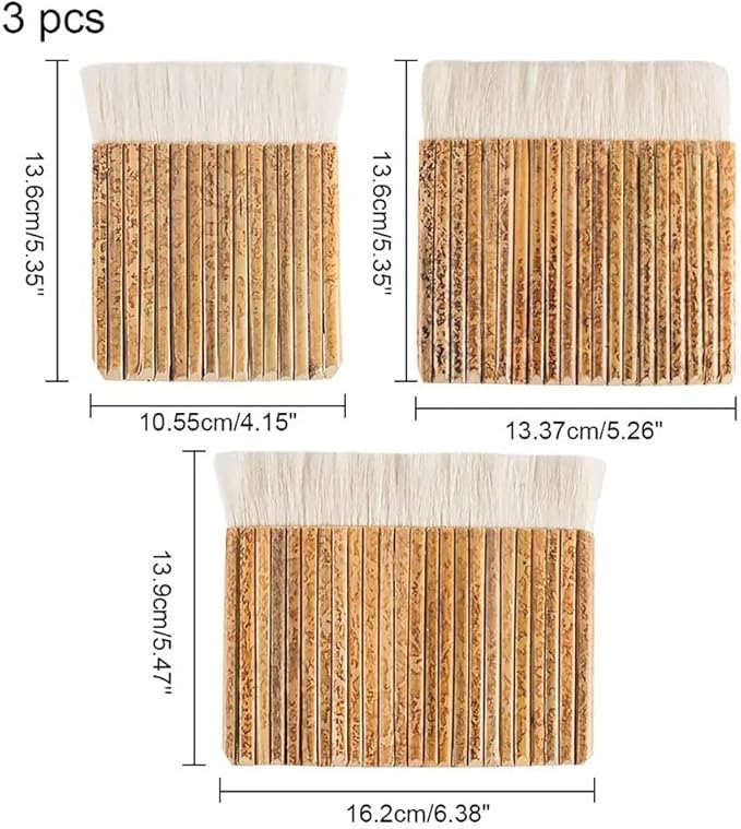 3つの異なるサイズ:約10.5cm / 4.15インチ、13.3cm / 5.26インチ、16.2cm /6.38インチ幅。 さまざまなサイズの良い選択。 フラットヘイクブラシは幅の広いブラシで、広い領域にメディアを適用したり、洗浄、サイジング、接着などに最適です。