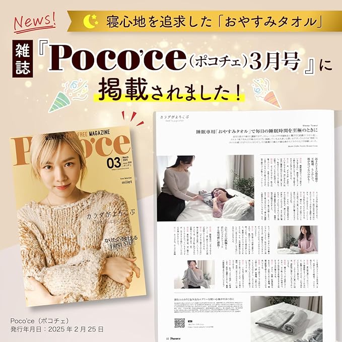 ✅【極上の寝心地】タオルで寝る人に極上の寝心地を追求した『睡眠専用おやすみタオル』。繊維の間にたっぷりの空気を含み、ふんわりと包み込まれるような心地良さ。