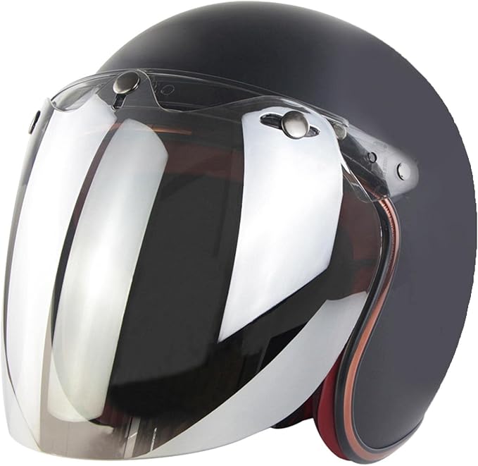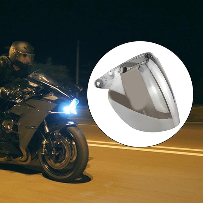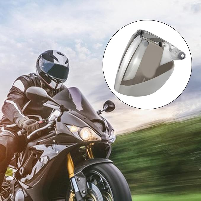 Generic オープンフェイスヘルメット用3スナップバイザーレンズシールドレトロウインドスクリーン耐久性, 銀