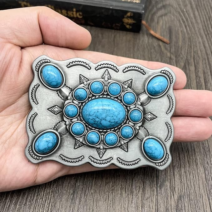 バックルは1.5インチ (38mm) までのスナップフィットベルトにフィットします。これはレトロなアメリカ先住民の西部カウボーイスタイルのベルトバックルです。