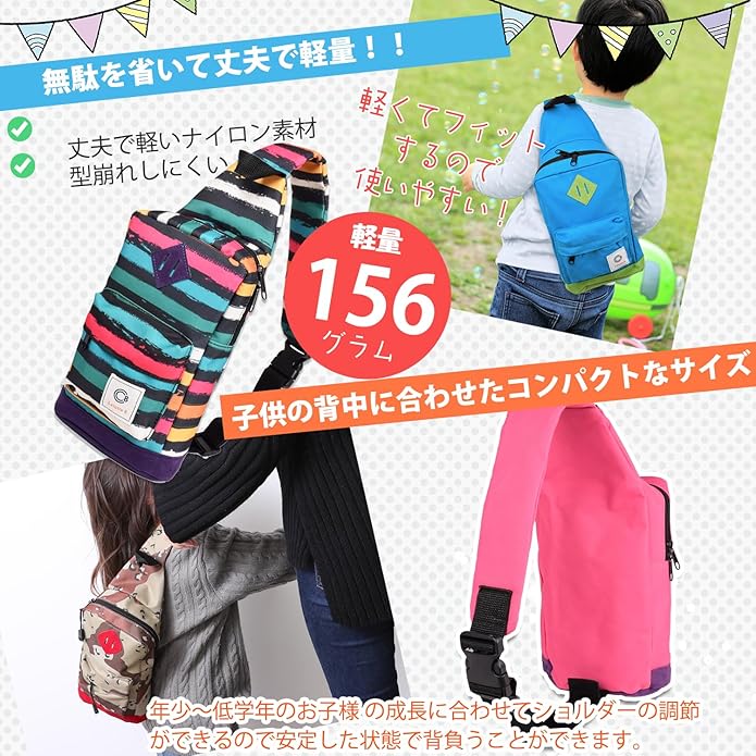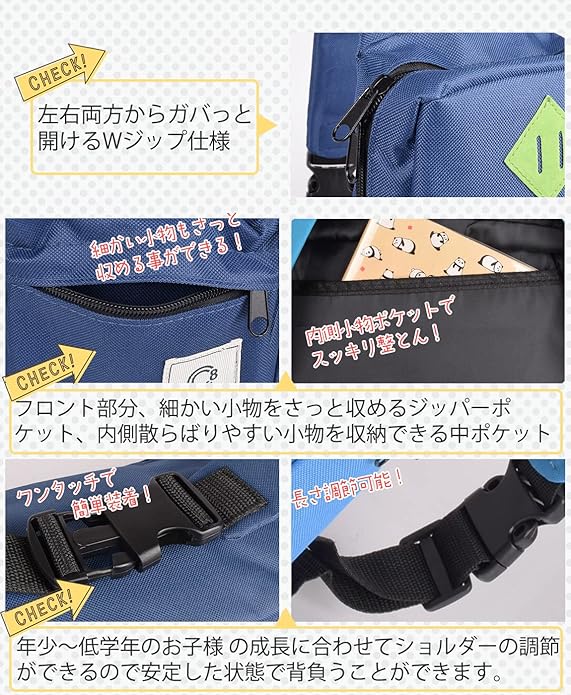 ✅【軽量で耐久性あるナイロン素材】パリッとした丈夫なナイロン素材使用、型崩れもしにくく、無駄を省いた156gの軽量バッグなので、お子様の負担になることなくからう事ができます。機能面では、両方向から開け閉めできるダブルジップ仕様、表側にジップポケット、内側には 収納 に便利な仕分けポケットを配したシンプルなつくりです。
