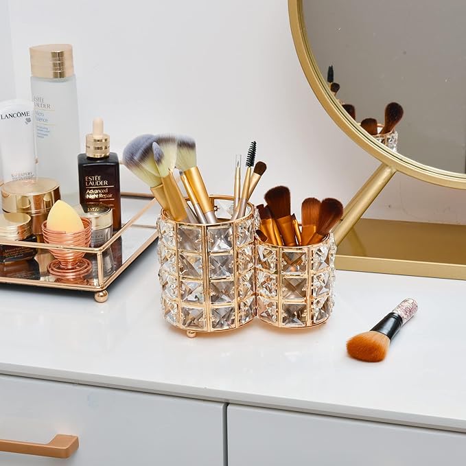 1.ブラシスタンドは高品質な合金とクリスタルガラス製、精緻な加工、良い素材を使用し、メイクブラシケースの耐久性を確保します。