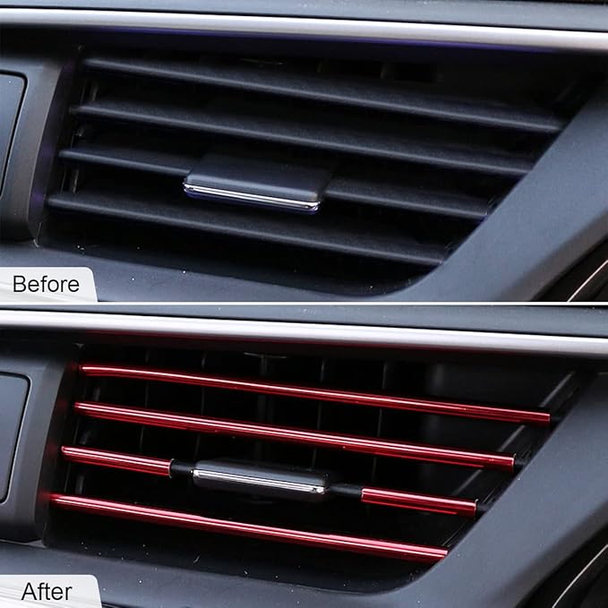 [ユニークな装飾] これらの装飾ストリップがなければ、エアベントアウトレットはシンプルで簡単な外観になります。このストリップは、車を装飾するだけでなく、よりアクティブで特別な外観にしますが、通気口コンセントを保護し、新品で清潔に保ちます。
