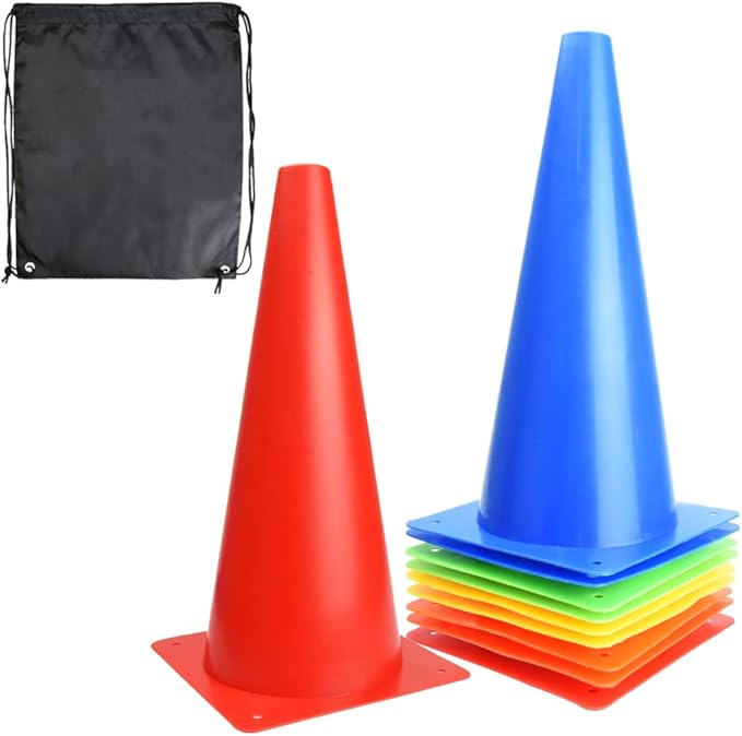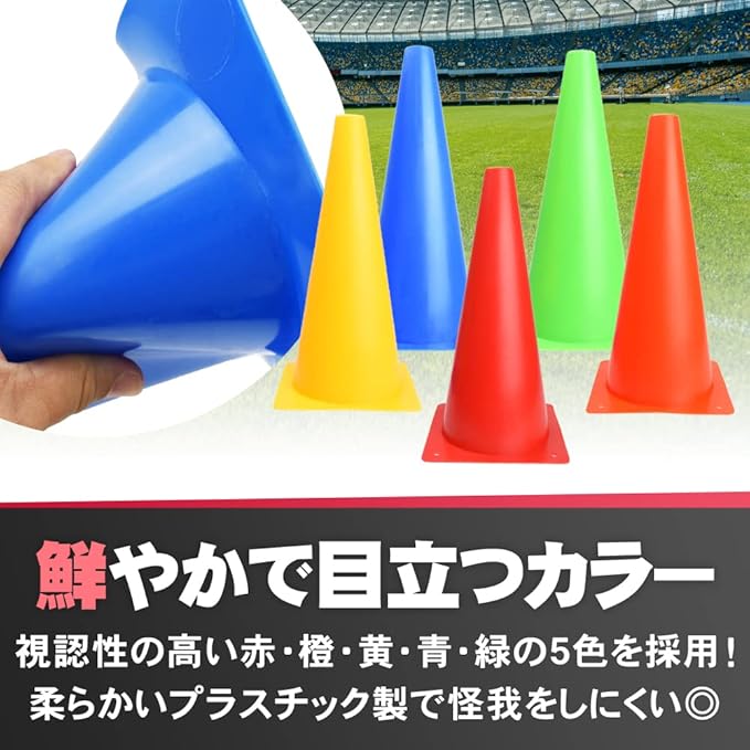 個人練習やミニゲーム、ドッグトレーニングに最適なコンパクトサイズ!軽くて持ち運びに便利なカラーコーン10本セットです。