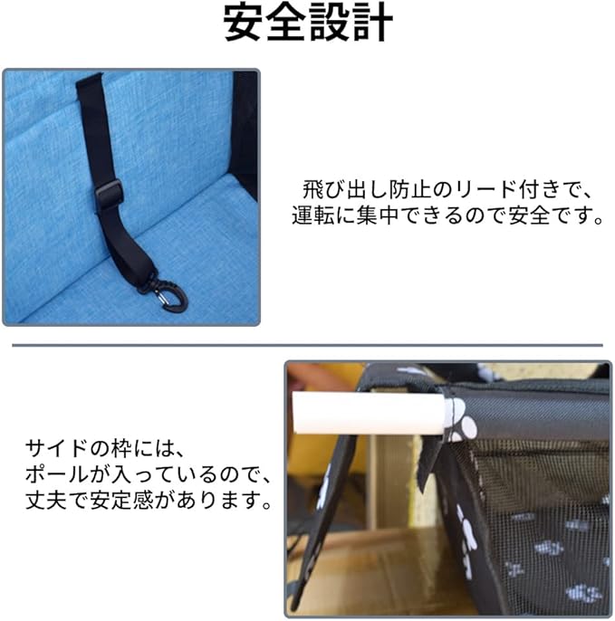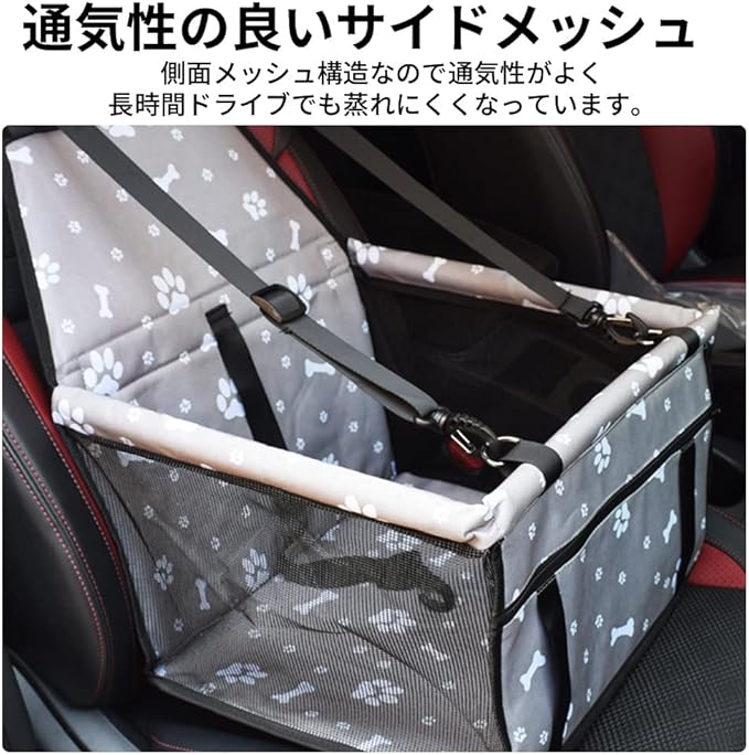 SUGGEST ペット用 ドライブ シート ボックス 選べるカラー セーフティベルト付き 側面メッシュ構造 ポケット付き 犬 車内 ペット 折りたたみ ドライブシート ドライブボックス (ブルーS) | oioioichan