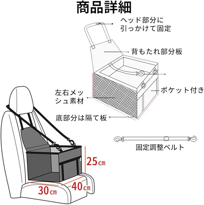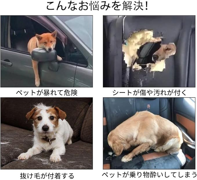 飛び出し防止のセーフティベルト付きで安心・安全。車のシートを毛や汚れからも守ります。