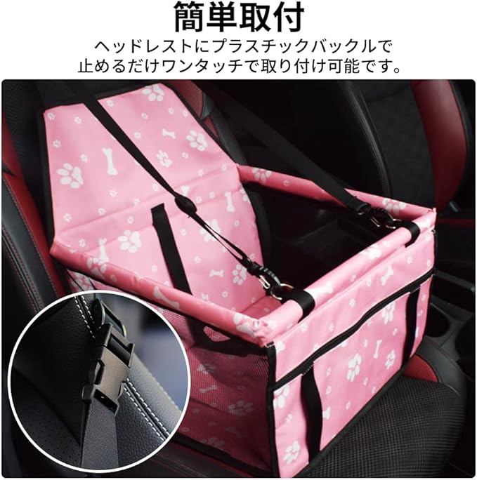 ヘッドレストにプラスチックバックルで止めるだけ!ワンタッチで取り付け可能です。