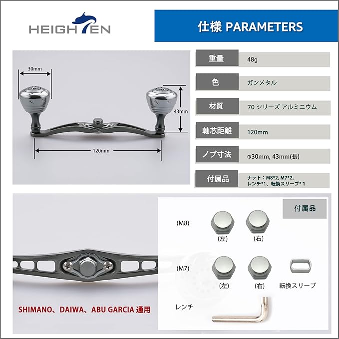 HEIGHTEN 120mm ベイト リール ハンドル シマノ ダイワ アブガルシア 通用 ベイトリール 用 Spider Series