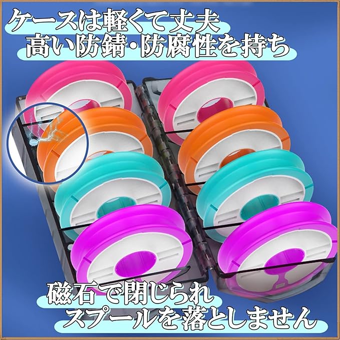 仕掛け巻きは色違いでケース付きなので、色や収納位置で使いたいラインや仕掛けが識別できます。
