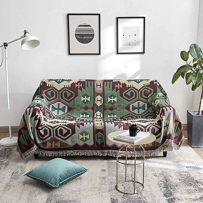【おしゃれなデザイン】:多機能、四季通用、北欧風、フリンジ付き 、両面で使用できます。麻素材で出来上がり、ずれにくいで。常温水洗ならドライクリーニングも洗濯機でクリーニングも可です,綿の糸は特別な処理を行い、堅くなりますが、クリーニングの回数に従って柔らかくなります。