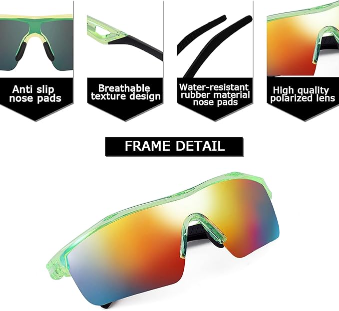 FEISEDY 子供用スポーツサングラスフレームは光沢仕上げで塗装されています。テンプルは耐水性のゴム素材でできており、汗をかいてもこめかみや頬の摩擦を改善します