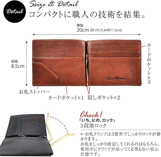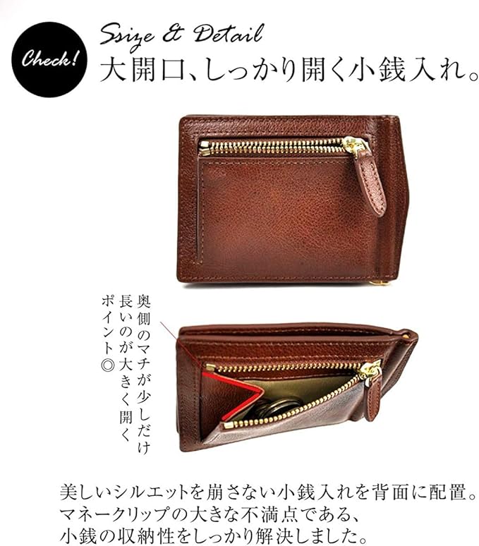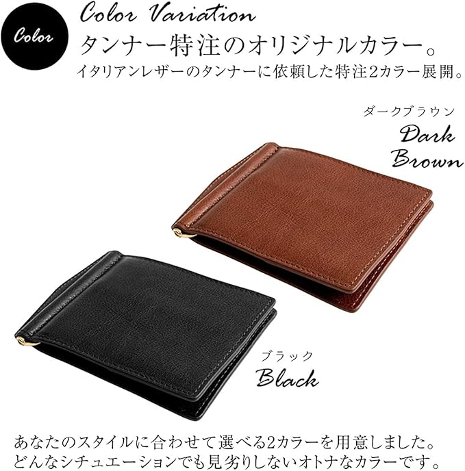 "ワンランク上の大人を演出" スーツスタイルには、極限まで薄さを追求したマネークリップがベスト。 内ポケットに入れても膨らみが無く、スタイリッシュなスーツラインを邪魔しない。 カバンの小さなスペースにもすっぽりと収まる。
