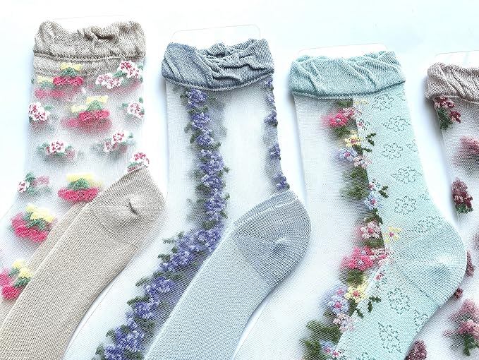 【素材】ポリエステル・綿・ポリウレタン *綿混のシースルー柄ソックスです。