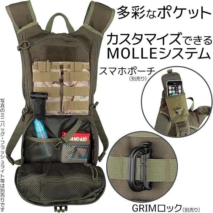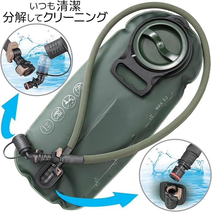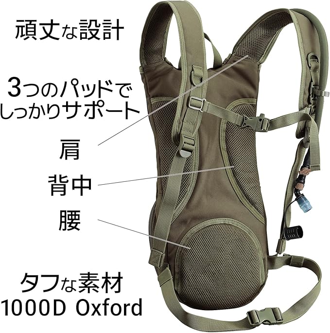 KAMUI ハイドレーションバッグ 【大容量3L】 ミリタリーバックパック付き給水機能 - トレイルランニング、ハイキング、サイクリング、キャンプ、スキー、スノーボード、サバイバルゲームなどに最適 | oioioichan